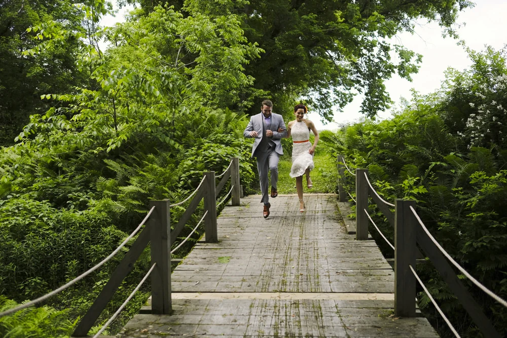 Skipping To The Ceremony At Path Of Life Sculpture Garden Boston Candid Wedding Photographer